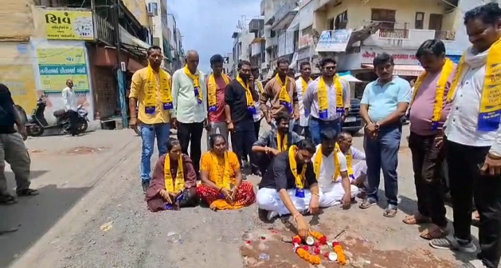 રાજપીપળાના સ્ટેશન રોડ વિસ્તારમાં આવેલ સબ જેલ નજીક રસ્તા પર પડેલા મોટા ખાડાઓને લઇ સ્થાનિક લોકોમાં ભારે અસંતોષ જોવા મળી રહ્યો છે. શહેરની અવર-જવર માટે મહત્વ આ માર્ગ પરથી દરરોજ મોટી સંખ્યામાં વાહનો, ખાસ કરીને બાઇક અને મોટા વાહનો પસાર થાય છે. તંત્ર દ્વારા વારંવાર રજૂઆત કરવા છતાં હજુ સુધી કોઈ યોગ્ય કાર્યવાહી કરવામાં આવી નથી. આને લઈને આજે “આમ આદમી પાર્ટી”ના જિલ્લાના પ્રમુખ નિરંજનભાઈ વસાવાએ એક અનોખું વિરોધ પ્રદર્શન કર્યું. ખાડાઓને ફૂલહાર કરી, તિલક કરીને વિધિસર પદ્ધતિથી “પૂજા” કરવામાં આવી. આ પ્રદર્શનનો હેતુ તંત્રને જાગૃત કરવાનો હતો કે રસ્તાની દયનીય હાલત હવે સહનશક્તિ બહાર ગઈ છે.રાજપીપળા નગરપાલિકા તંત્ર જાણતે જાણતી આંખ મૂકી રહી છે. સામાન્ય લોકોનું જીવ જોખમમાં છે.સ્થાનિક રહીશો અને દુકાનદારો પણ આ સ્થિતિથી ત્રસ્ત છે અને તંત્રને જવાબદેહ બનાવવાની માંગ કરી રહ્યા છે.