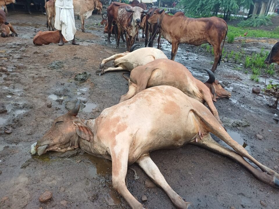 માંગરોળ તાલુકાના ઝંખવાવ ગામે સવારે લગભગ પાંચ વાગ્યાના સુમારે થયેલા ધોધમાર વરસાદ અને વીજળી ત્રાટકી હતી. આ વીજળી ગાયો પર પડતા ત્રણ ગાયોનાં મોત થયા છે. ઝંખવાવના ભરવાડ ફળીયામાં રહેતા લાખાભાઈ રઘુભાઈની ગાયો તેમના ઘરના પાસેના મેદાનમાં બાંધી રાખેલી હતી. વરસાદ દરમિયાન કડાકા ભડાકા સાથે વીજળી ગાયો પર પડતા ત્રણ ગાયોનાં ઘટનાસ્થળે જ મોત નિપજ્યું હતું.આ ઘટનાથી સમગ્ર ગામમાં શોકનો માહોલ છવાઈ ગયો છે. સ્થાનિક લોકો અને પશુપાલન વિભાગ દ્વારા ઘટનાની તપાસ શરૂ કરવામાં આવી છે અને નુકશાનની ભરપાઈ અંગે કાર્યવાહી હાથ ધરવામાં આવશે તેવી શક્યતા છે.