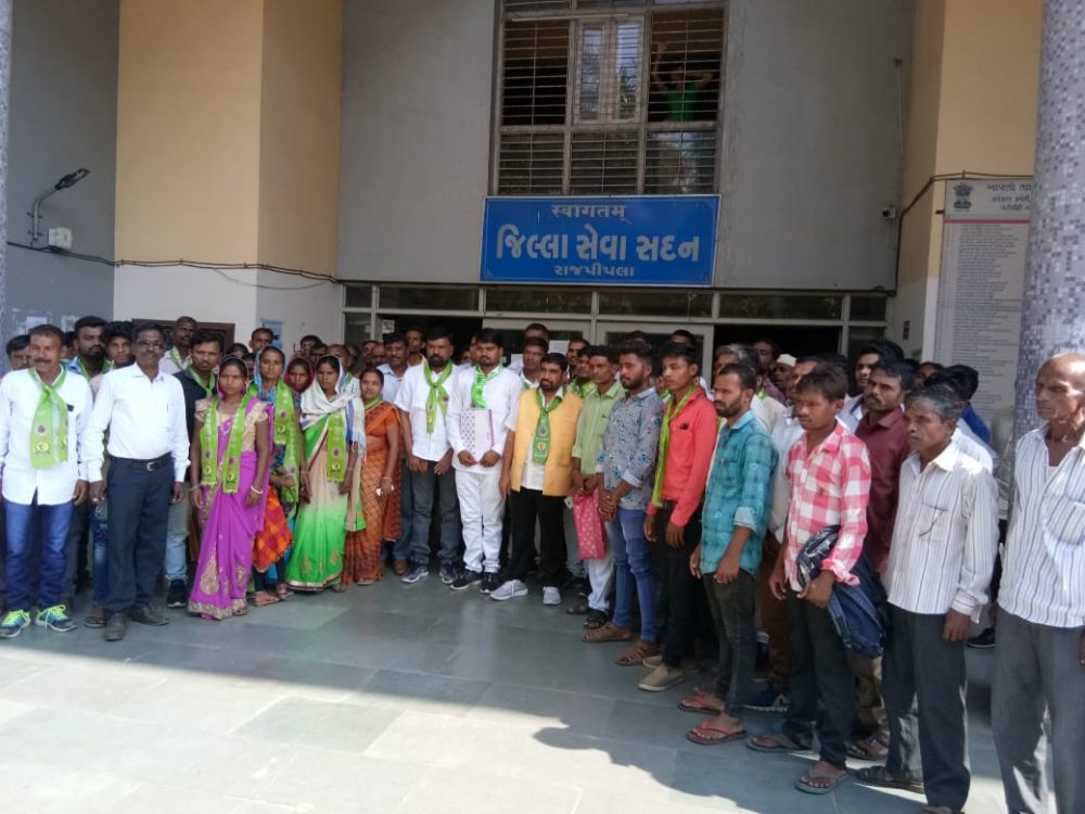 ગુજરાત સરકાર દ્વારા હાલમા લેવાયેલા નિર્ણય પ્રમાણે સમગ્ર ગુજરાતમાં ચાલતી પ્રાથમિક શાળાઓમા 30 થી ઓછી વિધાર્થીઓની સંખ્યા ધરાવતી હોય એવી તમામ પ્રાથમિક શાળાઓ મજૅ કરી બંધ કરવાનો સરકારે નિર્ણય લીધો છે જે સરકારના નિર્ણયના વિરોધમા આજે ભીલી સ્થાન ટાઈગર સેનાના અધ્યક્ષ અને ડેડીયાપાડાના ધારાસભ્ય મહેશ વસાવા, ભારતીય ટ્રાબલ કિસાન મજદૂર સંધના ગુજરાત પ્રદેશ પ્રમુખ ચૈતર વસાવા, કારોબારી અધ્યક્ષ બહાદૂર વસાવ, બીટીપી તાલુકા પ્રમુખ દેવેન્દ્ર વસાવા,તાલુકા પ્રમુખ માધવસીંગ વસાવા સહિત બિટીએસના કાર્યકરો મોટી સંખ્યામાં હાજર રહી જિલ્લા કલેકટર તેમજ દેડીયાપાડા મામલતદારને આવેદનપત્ર આપી રજુઆત કરી હતી.