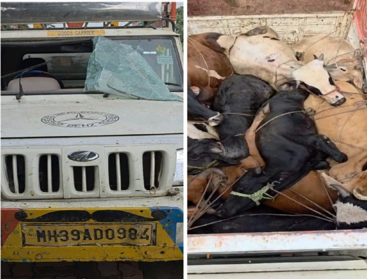 વાંકલ ::ઉમરપાડા પોલીસ સ્ટાફ ઉમરપાડા વિસ્તાર માં હતી ત્યારે પીકઅપ બોલેરોગાડી( MH 39 AD 3984)ને ચેક કરાતા તેમાંથી બે મોટી ગાય, સાત જેટલાં નાના મોટા વાછરડાંને બોલેરો પીકઅપ ગાડીમાં મોં પગ દોરી વડે બાંધેલી હાલતમાં હતા ક્રૂરતાપૂર્વક બાંધેલા હતા કોઈ પણ જાતના ચારાપાણી ની વ્યવસ્થા કરેલી ના હતી.બે ગાય, નાના વાછરડા જેની અંદાજીત કિંમત 42,000/-તથા બોલેરો ગાડીની કિંમત 3,50,00/-ગણી કુલ રૂપિયા 3,92,000/-ના મુદ્દામાલ સાથે કબ્જો લઈ કાયદેસરની કાર્યવાહી હાથ ધરતા ગૌવંશ કરનારાઓમાં ફફડાટ વ્યાપી જવા પામ્યો છે. બોલેરો ચાલકને વોન્ટેડ જાહેર કરવામાં આવ્યો છે.