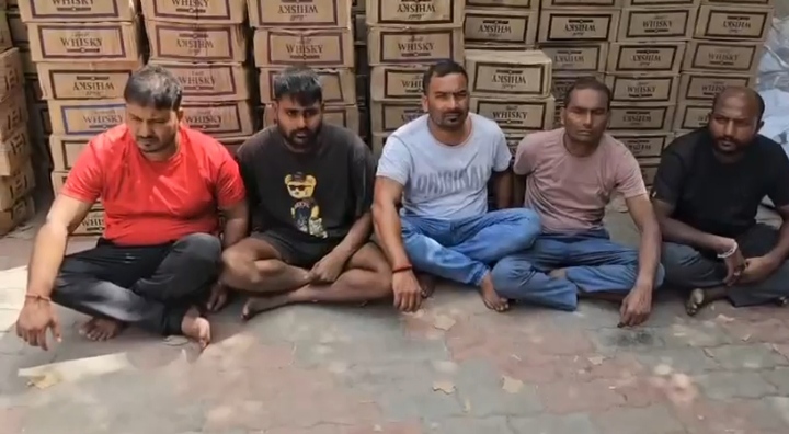 સ્ટેટ મોનીટરીંગ સેલ ની ટીમે અંકલેશ્વર નોગામા ગામની સીમમાં આલ્કેમ કેમિકલ ફેક્ટરી પાછળ ઈંગ્લીશ દારૂ ભરેલ ત્રણ વાહનો મળી કુલ 1 કરોડથી વધુના મુદ્દામાલ સાથે 5 આરોપીને ઝડપી પાડ્યા હતા. મળતી માહિતી અનુસાર સ્ટેટ મોનીટરીંગ સેલ દ્વારા અંકલેશ્વર તાલુકાના નૌગામાં ગામે અલ્કેમ કેમિકલ ફેક્ટરી ની પાછળના ખેતરમાં દારૂ કટિંગ વેળા ચોક્કસ માહિતી આધારે દરોડા પડ્યા હતા. દરોડા દરમિયાન પોલીસે કુલ 45,504 ઈંગ્લીશ દારૂની બોટલો મળી આવી હતી, જેની કિંમત અંદાજે ₹87,82,272 થાય છે. તે ઉપરાંત પોલીસે 6 મોબાઈલ ફોન, કિંમત ₹41,000, 3 વાહન કિંમત ₹18 લાખ અને રોકડ રૂપિયા 2,960 મળી કુલ મુદ્દામાલ કિંમત ₹1,06,26,232 નો જપ્ત કર્યો હતો. આ કાર્યવાહી દરમિયાન પોલીસે કુલ 5 આરોપીને પકડીને બી-ડિવિઝન પોલીસ સ્ટેશન અંકલેશ્વરને સોંપ્યા હતા. ઝડપાયેલા આરોપીઓમાં સુરતના સિધ્ધનાથ ઉર્ફે નગેન્દ્ર બેની પ્રસાદ યાદવ, સંદીપ ઓમપ્રકાશ ગુપ્તા, મહેન્દ્ર અમૃતલાલ પાલ, રવિ અજીત સરોજ તથા પાલકધારી કલ્લુ ગૌતમ નો સમાવેશ થાય છે. સ્ટેટ મોનિટરિંગ સેલ ની મોટી રેડ થી પોલીસ બેડામાં ખળભળાટ મચી જવા પામ્યો છે.
