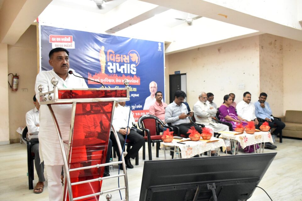 વિકાસ સપ્તાહ અંતર્ગત ડૉ. બાબા સાહેબ આંબેક્ટર હોલ ભરૂચ ખાતે જિલ્લા પંચાયત પ્રમુખશ્રી મહેન્દ્રસિંહ વાંસદીયાના અધ્યક્ષસ્થાને વિકાસ કાર્યોના લોકાર્પણ અને ખાતમુહૂર્ત માટેનો કાર્યક્રમ યોજાયો હતો.આ કાર્યક્રમમાં કુલ ૬૪૫.૯૫ લાખની રકમના ૮૦ કામોનું ખાતમૂર્હત અને ૧૩૭.૦૦ લાખની રકમના ૭૧ કામોનું લોકાપર્ણ કરાયું હતું. આ પ્રસંગે જિલ્લા પંચાયત પ્રમુખ મહેન્દ્રસિંહ વાંસદીયાએ જણાવ્યું હતું કે, સરકારે યુવા, ગરીબ, મહિલા અને ખેડૂતોના ઉત્થાન પર ભાર મૂકી અનેકવિધ યોજનાઓ અમલમાં મૂકી છે. યુવાઓને રોજગારી પૂરી પાડવા તથા તેમના કૌશલ્ય સર્જન માટે, મહિલાઓની સુરક્ષા અને તેમને પગભર બનાવી તેમના આર્થિક ઉત્થાન માટે, ખેડૂતો માટે કિસાન સન્માન નિધિ તથા અનેક સાધન સહાય જેવી યોજનાઓ થકી તેમની આવક બમણી કરવા તેમજ ગરીબ અને વંચિતોને અનેક જન સુખાકારીની યોજનાઓનો લાભ આપી તમને મુખ્ય પ્રવાહ સાથે જોડવામાં સરકાર સફળ બની છે. આ પ્રસંગે, ધારાસભ્ય રમેશ મિસ્ત્રીએ જણાવ્યું હતું કે, આજે આરોગ્ય, શિક્ષણ, રોજગારી, વીજળી તેમજ ખેતી ક્ષેત્રના વિકાસ સાથે ધબકતા થયા છે. તમામ ક્ષેત્રે માળખાકીય સુધારાઓ સાથે વિકાસની ગતિને વેગ મળ્યો છે અને છેલ્લા અઢી દાયકામાં ગુજરાત રાજ્ય તથા ૧૧ વર્ષમાં દેશની કાયાપલટ થઈ છે. આયુષ્માન કાર્ડની યોજના થકી આરોગ્ય ક્ષેત્રે ક્રાંતિકારી પરિણામો મળ્યા છે તેવું તેમણે વધુમાં ઉમેર્યું હતું. આજે વિકાસની વિભાવના બદલાઈ છે, શિક્ષણ, આરોગ્ય તથા શહેરી વિકાસ ક્ષેત્રે આદર્શ રોડ મેપ થકી અનેક વિકાસ પ્રકલ્પો નિર્માણ પામ્યા છે અને પામી રહ્યા છે. સરકાર દ્વારા જીએસટીના સ્લેબના ઘટાડો કરવામાં આવ્યો છે જેના લાભ આજે નાના ખેડૂતથી લઈને મોટા ઉદ્યોગપતિઓને મળી રહ્યાં છે. વધુમાં તેમણે સૌને સ્વદેશી વસ્તુ અપનાવીને દેશને આત્મનિર્ભર બનાવવામાં સહભાગી બનવા અપીલ કરી હતી.