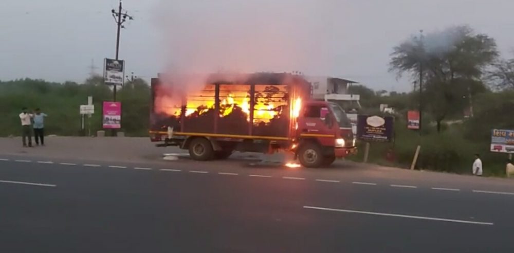ભરૂચના નેશનલ હાઇવે નંબર 48 ઉપર આજે સમી સાંજના સમયે પૂર ઝડપે જઈ રહેલા આઇસર ટેમ્પોમાં એકાએક આગ ભભૂકી ઉઠી હતી જોકે આ લાગવાની ઘટના ધટતાની સાથે જ ટેમ્પોચાલકમાંથી ટેમ્પોમાંથી કુદી ગયો હતો અને થોડીક જ વારમાં ટેમ્પો ભડભડ સળગવા માંડયો હતો ટેમ્પો સળગવાના પગલે ભરૂચના નેશનલ હાઇવે નંબર 48 ઉપર દોડતાં વાહનો એક તબક્કે થંભી ગયા હતા અને જ્યાં ગાડી આગ લાગી હતી તે વડલા ગામ નજીક લોકોમાં દોડધામ મચી ગઇ હતી. આ બનાવની જાણ ભરૂચ ફાયરબ્રિગેડને કરવામાં આવતા તેઓ ઘટના સ્થળે દોડી ગયા હતા અને પાણી છાંટી આગ પર કાબુ લેવાનો પ્રયાસ કર્યો હતો.