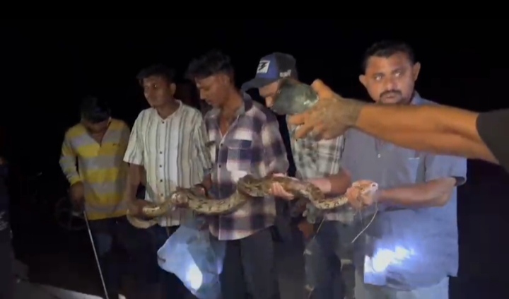 અંકલેશ્વર તાલુકાના મોતવાણ ગામે એક મહાકાય અજગર જોવા મળ્યો હતો, જેના કારણે ગ્રામજનોમાં ભય ફેલાયો હતો. આ અંગેની જાણ થતાં જ જીવદયા પ્રેમીઓની ટીમે તાત્કાલિક ઘટનાસ્થળે પહોંચી રેસ્ક્યુ ઓપરેશન હાથ ધર્યું હતું જીવદયા કાર્યકર્તાઓએ અત્યંત તકેદારીપૂર્વક આશરે 5 ફૂટ લાંબા અજગરને પકડી સુરક્ષિત રીતે બહાર કાઢ્યો હતો. અજગરને કોઈ ઈજા ન થાય તેની ખાતરી કરવામાં આવી હતી.રેસ્ક્યુ બાદ અજગરને જંગલ વિસ્તારમાં સુરક્ષિત સ્થળે છોડવાની તજવીજ શરૂ કરવામાં આવી છે.ગ્રામજનોના જણાવ્યા અનુસાર, અજગર ખેતર વિસ્તાર પાસે દેખાતા તેમણે તરત જ જીવદયા પ્રેમીઓને જાણ કરી હતી. ટીમના સમયસરના પ્રયત્નોને કારણે પરિસ્થિતિ નિયંત્રણમાં આવી હતી અને કોઈ જાનહાનિ થઈ નહોતી.