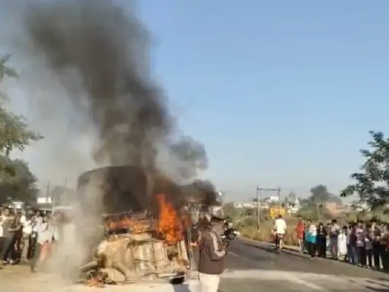 અંકલેશ્વર-વાલિયા રોડ પર આવેલા કોસમડી ગામ નજીક આજે (12 ડિસેમ્બર) સવારના સમયે હૃદયદ્રાવક અકસ્માત સર્જાયો હતો. બાઇક અને રિક્ષા વચ્ચે જોરદાર ટક્કર થતાં ક્ષણોમાં જ બંને વાહનમાં આગ ફાટી નીકળી હતી. આગ એટલી વિકરાળ હતી કે રિક્ષામાં સવાર ચંપાબહેન વસાવા જીવતા જ ભૂંજી જતાં તેમનું ઘટનાસ્થળે જ કરૂણ મોત નીપજ્યું હતું.