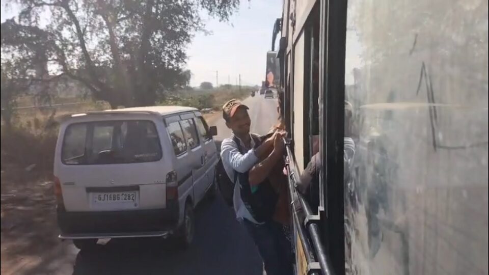 ભરૂચમાં આમોદ વિસ્તારમાંથી એક ચોંકાવનારો વીડિયો સામે આવ્યો છે, જેમાં એસ.ટી. બસમાં વિદ્યાર્થીઓ જોખમી રીતે મુસાફરી કરતા નજરે પડે છે. સોશિયલ મીડિયામાં વાયરલ થયેલા વીડિયોમાં સ્પષ્ટ જોવા મળે છે કે બસની અંદર ક્ષમતા કરતાં વધારે મુસાફરો ભરાયા છે, જ્યારે અનેક વિદ્યાર્થીઓ બસના દરવાજા પર લટકીને મુસાફરી કરવા મજબૂર બન્યા છે.રોજિંદા અભ્યાસ માટે આવનજાવન કરતા વિદ્યાર્થીઓને યોગ્ય બસ સુવિધા ન મળતા તેઓ પોતાની જિંદગી જોખમમાં મૂકી મુસાફરી કરી રહ્યા હોવાના દૃશ્યો સામે આવ્યા છે. બસની અંદર પગ મૂકવાની પણ જગ્યા ન હોવાથી વિદ્યાર્થીઓને દરવાજા પર ઊભા રહીને પ્રવાસ કરવો પડી રહ્યો છે.