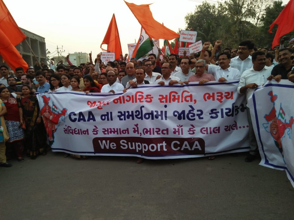 ભરૂચ જીલ્લાનાં જાગૃત નાગરીક સમિતિના ઉપક્રમે આજરોજ ભરૂચ ખાતે CAA તથા NRC ના સમર્થનમાં મહારેલી યોજાઇ હતી. આ રેલી માતરીયા તળાવથી નીકળી શક્તિનાથ મેદાન સુધી નીકળી હતી. જેમાં મોટી સંખ્યામાં જનમેદની ઉમટી હતી.