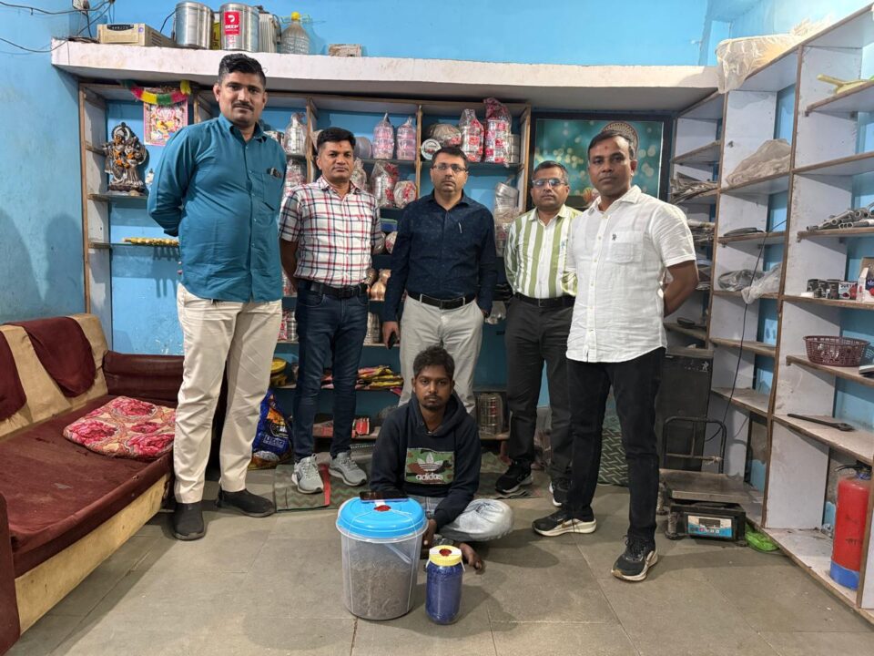 SOG સ્ટાફ પેટ્રોલિંગ દરમિયાન મળેલી ચોક્કસ માહિતી મુજબ પાકીઝા હોટલ પાછળ આવેલી ‘ખુશી વાસણ ભંડાર’ દુકાન પર દરોડો પાડવામાં આવ્યો હતો. તપાસ દરમિયાન ત્યાંથી 1.605 કિલોગ્રામ ગાંજો, એક મોબાઈલ ફોન તથા રોકડ રકમ મળી કુલ રૂ. 85 હજારથી વધુનો મુદ્દામાલ જપ્ત કરવામાં આવ્યો હતો.