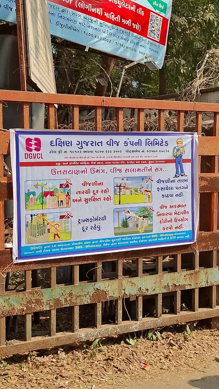 DGVCL દ્વારા તમામ લોકોને અપીલ કરવામાં આવી છે કે, ઉતરાયણને ખુશી અને સુરક્ષા સાથે ઉજવવા માટે સલામતીના નિયમોનું પાલન કરવું ખૂબ જ જરૂરી છે.