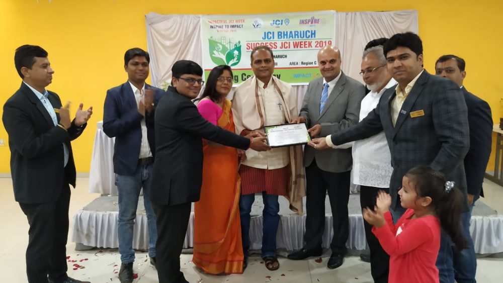 જુનીયર ચેમ્બર ઇન્ટરનેશનલ ભરૂચ દ્વારા આયોજિત જેસીઆઇ વીક 2019 અંર્તગત “ફેશ ટુ ફેશ આઇકોન મીટ” નું આયોજન કરવામાં આવ્યું. જેમાં જેસીઆઇ ના વર્લ્ડ વાઈસ પ્રેસિડેન્ટ જેસી અર્પિત હાથી સર મુખ્ય મહેમાન તરીકે હાજર રહ્યા હતાં, તેમજ ઝોન વાઈસ પ્રેસિડેન્ટ જેસી ડો.દર્શન મિર્ઝાદી સરે મુખ્ય મહેમાન તરીકે હાજરી આપી હતી. આ પ્રસંગે સાઇલન્ટ સોશ્યલ વર્કર તરીકે સમાજ માં કામ કરતી સંસ્થા સંસ્કૃતિ સમાજ સેવા સંસ્થાન ટ્રસ્ટ ભરૂચ ના સ્થાપક પ્રકાશચંદ્ર પટેલ અને હેમાબેન પટેલ ને તેમના સમાજ સેવા ના ઉત્તમસેવા કાર્યો કરવા બદલ સાલ ઓઢાડી સન્માનિત કરવામાં આવ્યા હતાં અને સાથે સન્માન પત્રક પણ એનાયત કરી બિરદાવવામાં આવ્યા હતાં.આ પ્રસંગે સર્વ હેપીનેશ નાં નિતિનભાઈ ટેલર નું પણ આ શ્રેણીમાં સન્માન કરવામાં આવ્યુ હતું.ઉપરાંત ભુતપૂર્વ પ્રમુખ શ્રી સુનિલભાઇ નેવે અને શ્રી ચિરાગભાઈ શાહ ને તેમની ઉત્કૃષ્ટ સેવાઓ બદલ સન્માનિત કરવામાં આવ્યા હતાં.
