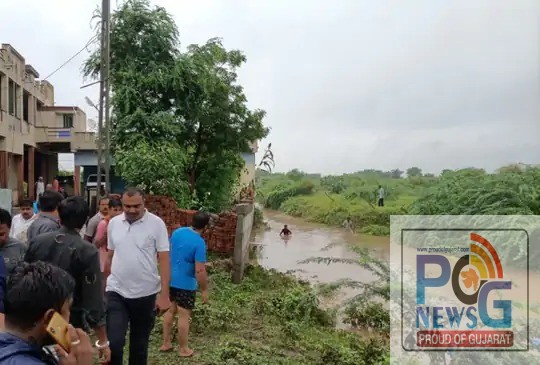 ભાવનગરના પાલિતાણામાં માતા સંતાનોને શાળાએ મૂકવા જતાં એક્ટિવા સાથે પાણીમાં તણાયા : માતાનો આબાદ બચાવ.