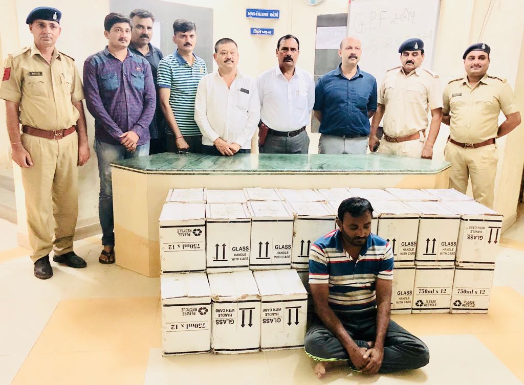 ફ્રુટના કેરેટની આડમાં લઇ જવાતો મસમોટો પરપ્રાંતીય ઇગ્લીશનો દારૂ જથ્થો પકડી પાડતી ધોધારોડ પોલીસ ટીમ