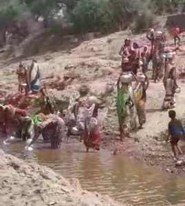 છોટાઉદેપુર જીલ્લામાં વરસાદે હાથતાળી દેતા જૂની પરંપરા મુજબ દેવને રીઝવવા પ્રયાસ કરતી મહિલાઓ.