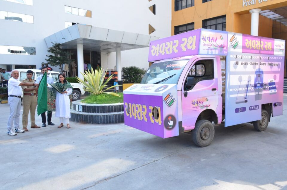 છોટાઉદેપુર જિલ્લાના જિલ્લા ચૂંટણી અધિકારી અને જિલ્લા કલેકટર સ્તુતિ ચારણે જિલ્લા સેવાસદન ખાતેથી અવસર રથને લીલી ઝંડી બતાવી પ્રસ્થાન કરાવ્યું હતું.