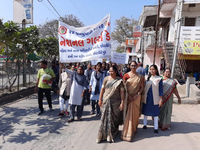 છોટાઉદેપુર ખાતે મહિલા અને બાળ અધિકારીની કચેરી તથા સખી વન સ્ટોપ સેન્ટરના સંયુક્ત ઉપક્રમે નેશનલ ગર્લ ડે ની ઉજવણીના ભાગરૂપે સમાજમાં દિકરીનું મહત્વ વધે અને દિકરી પ્રત્યે ભેદભાવ દૂર થાય એવા ઉમદા હેતુથી રેલીનું આયોજન કરવામાં આવ્યું હતું,