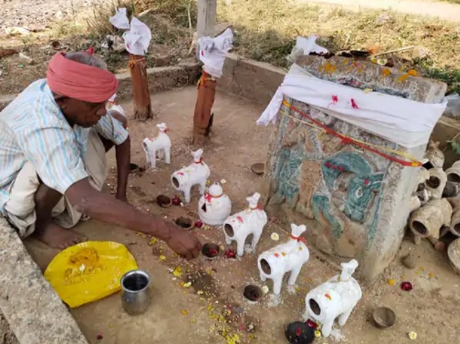 એક પહેલા દિવસે દેવ પૂજવા કે ગામમાં આવેલ પૌરાણિક દેવસ્થાનોનું પૂજન, દરેક ગામોમાં લગભગ દૂધિયો દેવ, ઝરીયાદેવ, બાબા કુવાજા દેવ, ભેહાઅંટો દેવ, ગાદરીયો દેવ, વેરાઈમાતા, ખેડાઈ માતા વગેરે દેવો દરેક ગામોમાં હોય છે. તે ઉપરાંત અન્ય દેવસ્થાનો પણ દરેક ગામમાં હોય છે તેઓનું પૂજન કરાય છે. બીજા દિવસે મુખ્ય તહેવાર, તે દિવસે ખાસ મનપસંદ વાનગીઓ બનાવીને ખાવાની પ્રથા હોય છે.