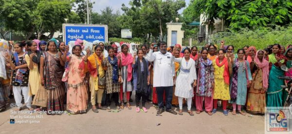 ગુજરાતની મહિલાઓની તાકાતથી સારી રીતે પરિચિત ગુજરાત સરકાર પોતાના મળતિયા સંગઠનોને ચર્ચા માટે બોલાવી નજીવો વેતન વધારો કરી સંગઠનો મારફતે આંદોલન પુરુ કરવાની જાહેરાત કરાવી વાહવાહી લુંટી રહી છે સરકારની આવી મહિલા વિરોધી નિતીનો મહિલા અધિકાર મંચ દ્વારા વિરોધ કરવામાં આવ્યો છે આજે દાહોદ જિલ્લાના આંગણવાડી વર્કર અને તેડાગર બહેનોએ લોલીપોપ વિતરણ કરી પોતાનો વિરોધ દર્શાવ્યો હતો અને આંગણવાડી વર્કર, તેડાગર, મીની આંગણવાડી વર્કર તેમજ આશાવર્કરોને લઘુત્તમ વેતન આપવા, અનુભવી આંગણવાડી વર્કરોને મુખ્ય સેવિકા તરીકે બઢતી આપવા, મીની આંગણવાડી વર્કરને સમાન કામ સમાન વેતનના મુજબ આંગણવાડી સમકક્ષ પગાર ચુકવવા તેમજ દર વર્ષે 15 ટકા પગાર વધારો આપવાની માગણી સાથે આજે દાહોદ કલેકટરને આવેદનપત્ર આપવામાં આવ્યું હતુ.