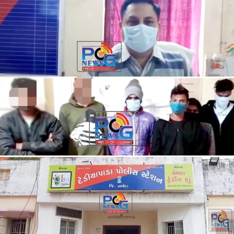 હિમકર સિંહ, પોલીસ અધિક્ષક, નર્મદાની સુચના તથા માર્ગદર્શન અનુસંધાને જીલ્લામાંશરીર વિરૂધ્ધના અનડેટેક્ટ ગુનાઓ ડીટેક્ટ કરવા તથા આવા ગુનેગારોને ઝડપી જેલ હવાલે કરવાની સુચના તથા માર્ગદર્શન આપતાં તે અનુસંધાને રાજેશ પરમારના.પો.અધિ. રાજપીપલા વિભાગના સુપરવિઝન હેઠળ પી.પી.ચૌધરી, સી.પી.આઇ. ડેડીયાપાડા તથા એ.એમ.પટેલ, પોલીસ ઇન્સ્પેકટર, એલ.સી.બી. તથા એલ.સી.બી. ટીમના પોલીસ માણસો તથા બી.આર.પટેલ, પો.સ.ઇ. ડેડીયાપાડા તથા ડેડીયાપાડા પોલીસે સંયુક્ત ઓપરેશન કરી ડેડીયાપાડા વિસ્તારમાં થયેલ સગીર વયની કિશોરી ઉપર સામુહીક બળાત્કારની ઘટનાના આરોપીઓની શોધખોળ કરવા અલગ-અલગ ટીમો બનાવી આરોપીઓને પકડવાના ચક્રો ગતિમાન કરેલ હતા. જે અનુસંધાને ખાનગી બાતમીદાર મારફતે બાતમીને આધારે આ સામુહીક બળાત્કારને અંજામ આપનાર આરોપીઓ (૧) અંકીતભાઇ સતીશભાઇ તડવી( રહે. થાણાફળીયા ડેડીયાપાડા)(૨) આકાશભાઇ અશોકભાઇ વસાવા (૩) રવિકુમાર ઉર્ફે બશી અતુલભાઇ માછી (૪) રાહુલકુમાર છગનભાઇ વસાવા (ત્રણેવ રહે. પારસી ટેકરા ડેડીયાપાડા) (૫) રાહુલભાઇ ઉર્ફે નાનું જયેશભાઇ સોલંકી( રહે. નવીનગરી ડેડીયાપાડા) તથા (૬) કાયદાના સંધર્ષમાં આવેલ કિશોરને ગણત્રીના કલાકોમાં ઝડપી પાડી યુક્તિ પ્રયુક્તિથી પુછપરછ કરતાં સામુહીક બળાત્કારનો ગુનાની કબુલાત કરેલ હોય જેથી આરોપીઓ વિરૂધ્ધ દેડીયાપાડા પોલીસે કાયદેસરની કાર્યવાહી હાથ ધરી છે. એક સગીર કન્યા ઉપર સગીર યુવકો દ્વારા સામુહિક ઘટનાના સમાજમા ઘેરા પ્રત્યાઘાત પડ્યા છે. આ બાબતે દેડિયાપાડાના ધારાસભ્ય મહેશભાઇ વસાવાએ આ ઘટનાની નિંદા કરી સખત શબ્દોમાં વખોડી કાઢી પણ જિલ્લા પોલીસ વડા સાથે વાતચીત કરી આ ઘટનાના કોઈ પણ આરોપીઓ સામે કડક કાર્યવાહી કરવાની માંગ કરી હતી.