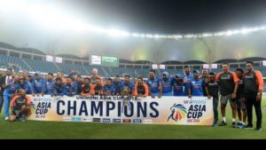 સૌજન્ય-D.B-દુબઈઃ દુબઈઃ એશિયન કપની ફાઈનલમાં બાંગ્લાદેશે આપેલા 223 રનના પડકાર સામે ભારતે વિકેટ ગુમાવીને વીજય મેળવ્યો છે. ભારતની એશિયા કપમાં 1984 બાદ સાતમી વખત ચેમ્પિયન બન્યું છે. ફાઈનલમાં બાંગ્લાદેશ સામે રોમાંચક જીત થઈ છે. ભારતે 50 મી ઓવરના છેલ્લા બોલે જીત મેળવી છે. કેદાર જાદવ 23 રને અને કુલદીપ યાદવ 5 રને નોટ આઉટ રહ્યા હતા.