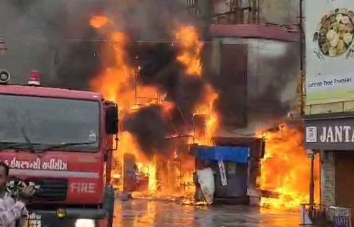એક તરફ બિપરજોય વાવાઝોડાનો ખતરો છે. બીજી બાજુ જગતમંદિર પાસેની એક કાપડની દુકાનમાં આગ લાગતાં અફરા તફરી મચી ગઈ છે. આગનો કાબુમાં લેવા માટે ફાયર વિભાગની બે ટીમો ઘટના સ્થળે પહોંચી ગઈ છે. આગ કયા કારણે લાગી તેનું કારણ હજી અકબંધ છે.