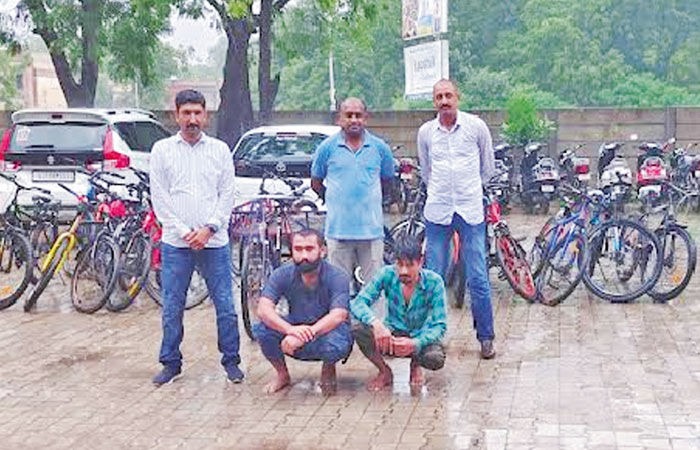 પાટનગર ગાંધીનગર શહેરમાં ઘરફોડ ચોરી સહિતના ગુનાઓ સતત વધી રહ્યા છે ત્યારે તેને અટકાવવા અને અગાઉ બનેલા ગુનાઓ શોધવા માટે જિલ્લા પોલીસ વડા રવિ તેજા વાસમ શેટ્ટી દ્વારા પોલીસને સુચના આપવામાં આવી છે. જેના પગલે ગાંધીનગર એલસીબી પોલીસ ઇન્સ્પેક્ટર ડી.બી વાળા દ્વારા સ્ટાફના માણસોને એલર્ટ રહીને આ પ્રકારના ગુના ઉકેલવા માટે તાકીદ કરવામાં આવી હતી. દરમિયાનમાં બાતમીના આધારે એલસીબીની ટીમે સેક્ટર ૨૪ ઇન્દિરા નગર વસાહતમાં રહેતા અઝરુદ્દીન ઉર્ફે અજરૃ ઉમરખાન બલોચને ઝડપી લેવામાં આવ્યો હતો અને તેની પાસેથી ચાર મોબાઇલ અને ૨૪ જેટલી સાયકલો કબજે કરવામાં આવી હતી. ત્યારબાદ સેક્ટર ૨૧ માં રહેતા મુકેશ ચેતનભાઇ ભુંડિયાને પણ ઝડપી લેવામાં આવ્યો હતો. જેની પાસેથી ચાર સાયકલ કબજે કરવામાં આવી હતી. આ આરોપીઓની પૂછપરછ દરમિયાન તેમણે કબુલાત કરી હતી કે, ગાંધીનગર શહેરમાં ટયુશન ક્લાસીસ આસપાસ રેકી કરીને આ સાયકલોની ચોરી કરવામાં આવી હતી. એટલું જ નહીં એકલદોકલ વ્યક્તિને રોકી તેની પાસેથી મોબાઇલ પણ ઝૂંટવી લેવામાં આવ્યા હતા. હાલ પોલીસે ૧.૧૧ લાખ રૃપિયાનો મુદ્દામાલ જપ્ત કરીને બંને આરોપીઓની ધરપકડ કરી વધુ તપાસ શરૂ કરી છે. આરોપીઓની પૂછપરછ દરમિયાન ગાંધીનગર શહેરમાં થયેલી અન્ય ચોરીની ઘટનાઓનો ભેદ પણ ઉકેલાઈ શકે છે. તો સાયકલો સંદર્ભે નાગરિકોએ સેક્ટર ૨૮ એલસીબી કચેરીનો સંપર્ક સાધવા પણ જણાવાયું છે.