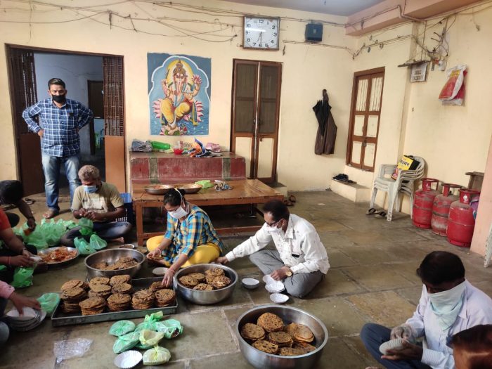 “અન્યોને પ્રેરણા મળે કે આ પ્રવૃતિમાં જોડાવાનો લહાવો મળે તે માટે આપ ઈન્ટરવ્યુ અને ફૂડ પેકેટ તૈયાર કરતા ફોટોઝ લો તે ઠીક છે પરંતુ ગરીબોને ફૂડ પેકેટનું વિતરણ કરતા ફોટોઝ અમે પડાવતા નથી કે કોઈ સોશિયલ મીડિયા પર મૂકવાનું સમર્થન પણ કરતા નથી.” ગોધરાના મહાકાળી માતાના મંદિરના વિશાળ રસોડા અને ભોજનકક્ષમાં સવારના સમયે તૈયાર થઈ રહેલા 700 થી વધુ ફૂડ પેકેટસ પર નજર રાખતા જિગરભાઈ દવે આમ જણાવે છે. સરકારે લોક ડાઉન દરમિયાન રોજમદારો, ગરીબો, શ્રમિકો, ભિક્ષુકો સહિતના જરૂરતમંદ વર્ગને બે ટંક ખાવા-પીવાની મુશ્કેલી ન પડે તે માટે એપ્રિલ માસના ફ્રી રાશનનું વિતરણ, રાશનકીટનું વિતરણ, અન્નબ્રહ્મ યોજના અંતર્ગત વિતરણ સહિતના આયોજનો કર્યા છે જ પરંતુ એ મહાકાળી ગ્રુપ જેવા સેવાભાવી જૂથો-સંસ્થાઓ જ છે કે જે લોક ડાઉન દરમિયાન આપણા દેશબાંધવો ભૂખા ન સૂવે તે સુનિશ્ચિત કરવા સરકારના હાથ મજબૂત કરી રહ્યા છે. જિગરભાઈ અને તેમના સાથી એવા 15-20 યુવાનોનું જૂથ લોક ડાઉન દરમિયાન આર્થિક પ્રવૃતિઓ બંધ થવાના કારણે સંઘર્ષ કરી રહેલા શ્રમિકો, ગરીબો, ઘરવિહોણાઓ, ફરજ પર કાર્યરત પોલિસ સહિતના કર્મચારીઓને સમયસર સારી ગુણવત્તાનું ભોજન મળી રહે તે માટે રોજ સવારે 600- 700 જેટલા ફૂડ પેકેટ બનાવે છે. જિગરભાઈ જણાવે છે કે લોક ડાઉન જાહેર થયું ત્યારથી જ શહેરના ગરીબો, ભિક્ષુકો માટે ચિંતા હતી અને તેમના માટે ભોજનનું વિતરણ કરવાનો વિચાર તેમણે રજૂ કર્યો. જેને સમિતભાઈ પટેલ, દર્શનભાઈ સોની, જતીનભાઈ સુખડિયા, હર્ષભાઈ સોની, સંકેતભાઈ સોની, કૌશલભાઈ ચોક્સી, જતિનભાઈ ત્રિવેદી, રવિભાઈ જોષી, આર્યન દવે સહિતના મિત્રોએ વધાવી લીધો. આ જૂથના સભ્યો અને અન્ય ભાવિક જનો પણ આ પ્રવૃતિ માટે સર-સામાનનું યોગદાન આપે છે, જેમાંથી રોજ સવારે આ સભ્યો ગુણવત્તાસભર અને પૌષ્ટિક નાસ્તો-ફૂડ પેકેટ બનાવે છે. દર્શનભાઈ સોની જણાવે છે કે રોજ એકની એક વસ્તુ ન આપતા અમે ચણા પુલાવ, થેપલા, બુંદી-ગોટા, પુરી-સબ્જી, ખિચડી, પૌંઆ જેવી અલગ-અલગ વાનગી બનાવી વિતરણ કરીએ છીએ. જમવાનું બનાવવાની જગ્યા તેમજ વાસણો સારી રીતે સ્વચ્છ હોય તેમજ પ્રવૃતિમાં ભાગ લેનાર મિત્રો માસ્ક તેમજ સોશિયલ ડિસ્ટન્સિંગ સહિતના બચાવ અંગેના નિર્દેશોનું દરેક પગલે પાલન કરે છે. વિતરણ સમયે પણ ગ્લોવ્ઝ અને માસ્ક ફરજિયાપણે પહેરી રાખે છે. ફ્રેશ નાસ્તાના ફૂડ પેકેટ તૈયાર થઈ ગયા પછી આ મિત્રો ચાર અલગ-અલગ દિશામાં નીકળી પડે છે. બામરોલી રોડ, ગોન્દ્રા ચોકડી રોડ, ભૂરાવાવ-લુણાવાડા રોડ અને પટેલવાડા એમ ગોધરાના તમામ વિસ્તાર કવર થઈ જાય તેવી રીતે વિતરણ કરે છે. ગરીબો અને જરૂરતમંદો ઉપરાંત લોક ડાઉનનું પાલન કરાવવા ફરજ પર તૈનાત પોલિસ-ટ્રાફિક-જીઆરડીના જવાનોને પણ તેઓ ફૂડ પેકેટ પહોંચાડે છે. સવારે 8:00 વાગ્યાથી તૈયારીઓમાં પરોવાઈ જતા આ મિત્રોના ચહેરા પર કલાકોની મહેનત પછી પણ થાક ન
