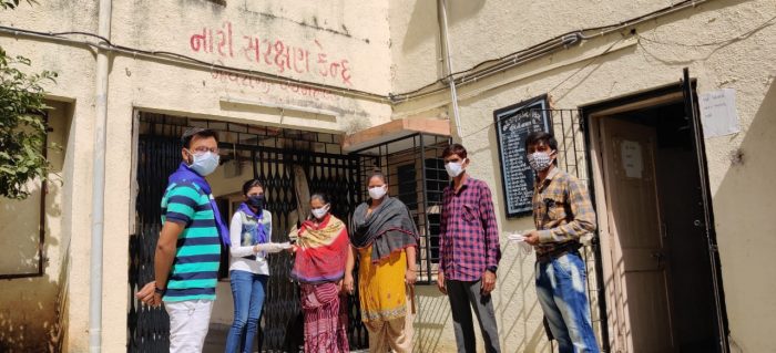 ગોધરાની શેઠ પી.ટી. આર્ટસ એન્ડ સાયન્સ કોલેજનાં વિદ્યાર્થીઓએ માસ્ક વિતરણ કર્યું.