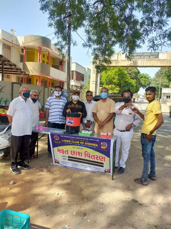 ગોધરા લાયન્સ કલબના સભ્યોએ ગોધરા શહેરના ધમધમતા ગાંધી પ્રેટોલ પંપ, દાહોદ રોડ પર રાહદારીઓ, વાહનચાલકો, એસ.ટી બસના મુસાફરોને ઠંડી છાસનું વિતરણ કર્યુ હતુ, લાયન્સ ક્લબના હોદ્દેદારો, સભ્યો ગોરધનભાઈ દાસવાણી, ઈન્દુભાઇ પરમાર, મહેન્દ્રભાઈ નાગર, પ્રદીપભાઈ સોની હેમંતભાઈ વર્મા, રાજેશભાઈ મોદી, ભાવેશભાઈ બુઘવાણી, હોતચંદભાઈ ઘમવાણી તથા ભરતભાઈ ખરાદી હાજર રહ્યા હતા.