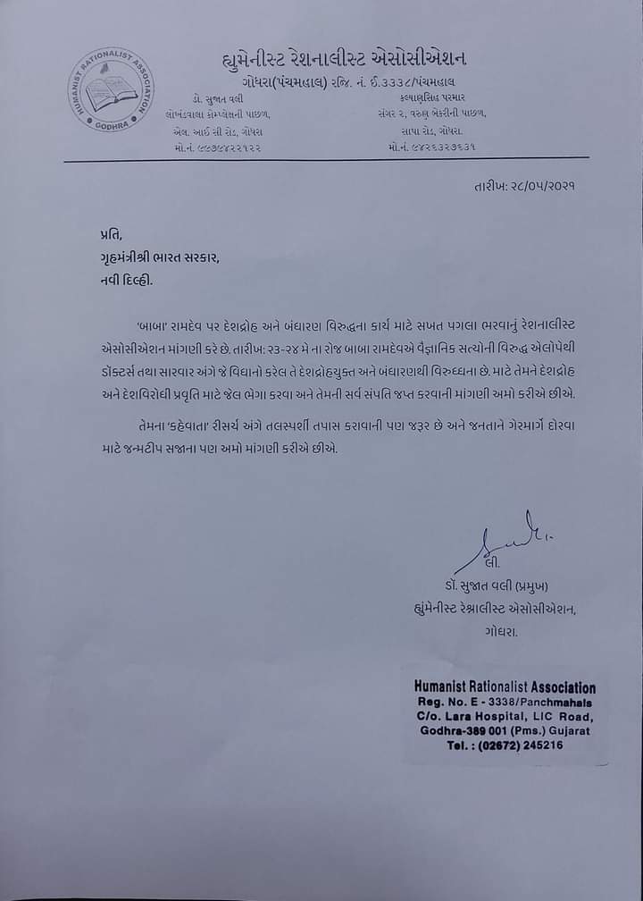 બાબા રામદેવનાં વિવાદાસ્પદ નિવેદનને લઇને ગોધરાના તબીબોમાં રોષ, રેશનાલિસ્ટ એશોશિએશન દ્વારા આ કરાઈ માંગણી.