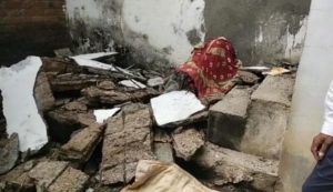 પંચમહાલ જિલ્લાના વડામથક ગોધરા શહેરના સાયન્સ કોલેજ રોડ ઉપર આવેલી શિવજ્યોતિ સોસાયટી આવેલ એક મકાનમાં રહેતી મહિલા સવારના સમયમાં શાકભાજી લેવા નીકળી હતી. તે સમયે મકાનની આગળ ની છાજલીનો ભાગ જે જર્જરિત હતો, એ જ ભાગ અચાનક ધસી પડતા મહિલા છત નીચે દબાઇ ગઇ હતી. અચાનક પડયા હોવાનો અવાજ થતા આસપાસના લોકો એકત્ર થઇ ગયા હતા. અને મકાનના કાટમાળ હટાવીને તેને બહાર કાઢવાની કામગીરી કરી હતી. મહિલાનું દબાઇ જવાના કારણે ઘટનાસ્થળે જ કરુણ મોત થયું હતું.આ બનાવની જાણ એ ડિવિઝન પોલીસને થતા પોલીસ અધિકારીનો કાફલો બનાવ સ્થળે આવી પહોંચ્યો હતો અને જરૂરી કાર્યવાહી હાથ ધરી હતી.મહિલાના મોતના કારણે તેના પરિવારમાં શોકનો માહોલ છવાયો હતો.