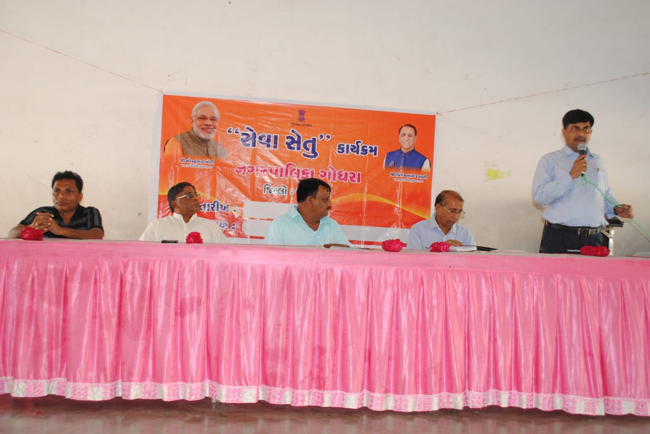 ગોધરા નગરપાલિકા તંત્ર દ્વારા આજ રોજ ગોધરા ની સેન્ટ આર્નોલ્ડ સ્કૂલ ખાતે વહીવટીતંત્ર ની ઉપસ્થિતિમાં સેવાસેતુ કાર્યક્રમ નું આયોજન કરવામાં આવ્યું હતું જેમાં ૧૨૧૧ જેટલી અરજીઓ આવેલી જેનું સેવાસેતુના કાર્યક્રમ અંતર્ગત ૧૨૧૧