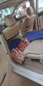 ગોધરા રેન્જ આઈ.જી.પી મનોજ શશીધર અને પોલીસ અધિક્ષક ડૉ. લીના પાટીલ ને મળેલ બાતમી અને એલ.સી.બી ના સુચના અનુસાર પી.આઈ ડી.એન.ચુડાસમા તેમજ કે.કે.ડીંડોડ દ્વારા બાતમીના આધારે ગોધરા બાય-પાસ હાઈવે રોડ નજીક સાંગપુર ચોકડી વિસ્તારમાંથી પસાર થતી સેવરોલેટ એન્જોય ગાડી માં વિદેશી દારૂનો જથ્થો મળી બે ઈસમો વડોદરા તરફ આવી રહ્યા હતા. ગાડી અટકાવી ઈસમોની તપાસ કરતા તેમના નામ જયેશ કનૈયાલાલ રાજપુત રહે. વારસીયા વડોદરા અને ચીરાગ નારણભાઇ ઓડ નામ જણાવ્યા હતા. તેમની ગાડી માંથી દારૂ અને બિયરની કુલ બોટલો નંગ-૨૯૫ કિંમત રૂપિયા ૧,૦૬,૨૬૫/- તથા અંગ ઝડતી માથી મળી આવેલ મોબાઈલ અને મોટરકાર મળી કુલ રૂપિયા ૮,૧૧,૭૬૫/- ની મતા પોલીસે જપ્ત કરી બંને વિરૂધ્ધ ગુનો નોંધી તપાસ હાથ ધરી છે.