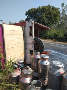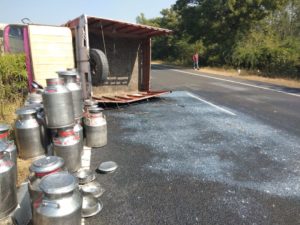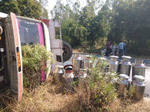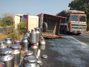 ગોધરા લુણાવાડા હાઇવે ખાતે આવેલ પસનાલ પાટિયા નજીક દૂધ ભરેલ ટ્રકચાલક લુણાવાડા હાઇવે થી ગોધરા તરફ આવતા હતા ત્યારે અચાનક ટ્રકનું ટાયર ફાટતા હજારો ટન દૂધનું નુકશાન થયું હતું જ્યારે ટ્રકમાં સવાર બે જણ ને ઈજાઓ થતાં સારવાર અર્થે તાબડતોડ હોસ્પિટલ ખાતે ખસેડવામાં આવ્યા હતા