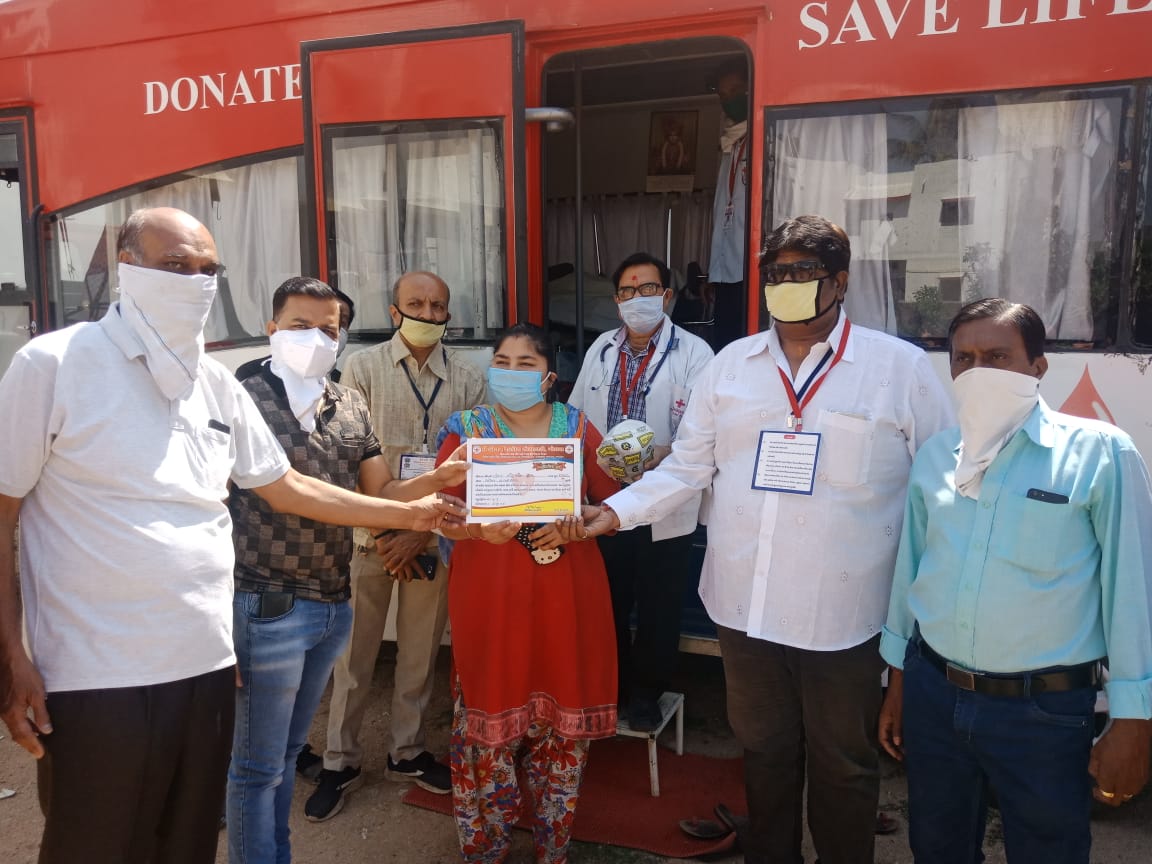 ત્યારે આજે ગોધરાના બામરોલી સમ્રાટ નગરની પાસે માં ગાયત્રી નગરના રહીશો દ્વારા રક્તદાન કરવામાં આવ્યું હતું. હાલ કોરોનાની મહામારીને લઈને દેશભરમાં લોક ડાઉનની સ્થિતિ છે ત્યારે આ લોક ડાઉનને લઈને બ્લડ બેન્કોમાં રક્ત દાતાઓની સંખ્યા ઓછી થતા બ્લડ બેન્કોમાં રક્તની અછત સર્જવા પામી છે ત્યારે પંચમહાલ જીલ્લાના ગોધરા ખાતે આવેલ ઇન્ડિયન રેડ ક્રોસ સોસાયટી સંચાલિત બ્લડ બેંકમાં હાલના સમયમાં રોજીંદી ૫૦ યુનિટ રક્તની માંગ સામે બ્લડ બેંક પાસે માત્ર ૨૦૦ યુનિટ જ રક્ત છે. પંચમહાલ જીલ્લામાં થેલેસીમિયા તેમજ સગર્ભા સ્ત્રી માટે હાલ રક્તની રોજીંદી વધુ પડતી જરૂરીયાતને પહોંચી શકાય તે માટે જિલ્લા કલેકટર દ્વારા પંચમહાલની જનતાને અપીલ કરવામાં આવી હતી કે યોગ્ય સોશિયલ ડિસ્ટન્સ રાખી લોકો આ સમાજ ઉપયોગી કામમાં આગળ આવે અને રક્તદાન કરે આ અપીલને એક ફરજ સમજી આજે ગોધરાના બામરોલી રોડ પર આવેલ સામ્રાટનગરની પાસે આવેલ ગાયત્રી નગરના રહીશો દ્વારા 3૦ યુનિટ ઉપરાંતનું રક્ત દાન કરવામાં આવ્યું હતું.