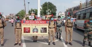 કોરોના વાયરસની વૈશ્વિક મહામારીમાં આપણી ચોતરફ કેટલાય એવા લોકો છે જે પોતાના જીવન સાથે રમત રમી તમાકુનું સેવન કરે છે. સમગ્ર વિશ્વમાં 31 મે ના દિવસને વિશ્વ તમાકુ નિષેધ દિવસ તરીકે ઉજવવામાં આવે છે. તમાકુના સેવન કરનાર લોકોને તેના નુકશાન બાબતે જાગૃતતા ફેલાવવા માટે આજે 30 ગુજરાત બટાલિયન એનસીસી કેડેટ દ્વારા ટોબેકો ડે ની ઉજવણી એક રેલી સ્વરૂપે કરવામાં આવી હતી. વિશ્વ તમાકુ નિષેધ દિવસ તમાકુથી દુર રહેવાનો લોકોને એનસીસી કેડેટ દ્વારા મેસેજ આપવામાં આવ્યો. આજે ૩૧ મેનો દિવસ વિશ્વ તમાકુ નિષેધ દિવસ તરીકે ઉજવામા આવે છે.આજકાલ વ્યસનના કારણે વધારે યુવાવર્ગ વધારે ભોગ બન્યો છે. વ્યસનને કારણે ઘર બરબાદ થાય છે ત્યારે હાલમાં આને લઈને જાગૃતિ લાવવી જરુરી છે. આજના દિવસે રાષ્ટીય કક્ષાએ, જીલ્લા કક્ષાએ વિવિધ કાર્યક્રમો થાય છે.