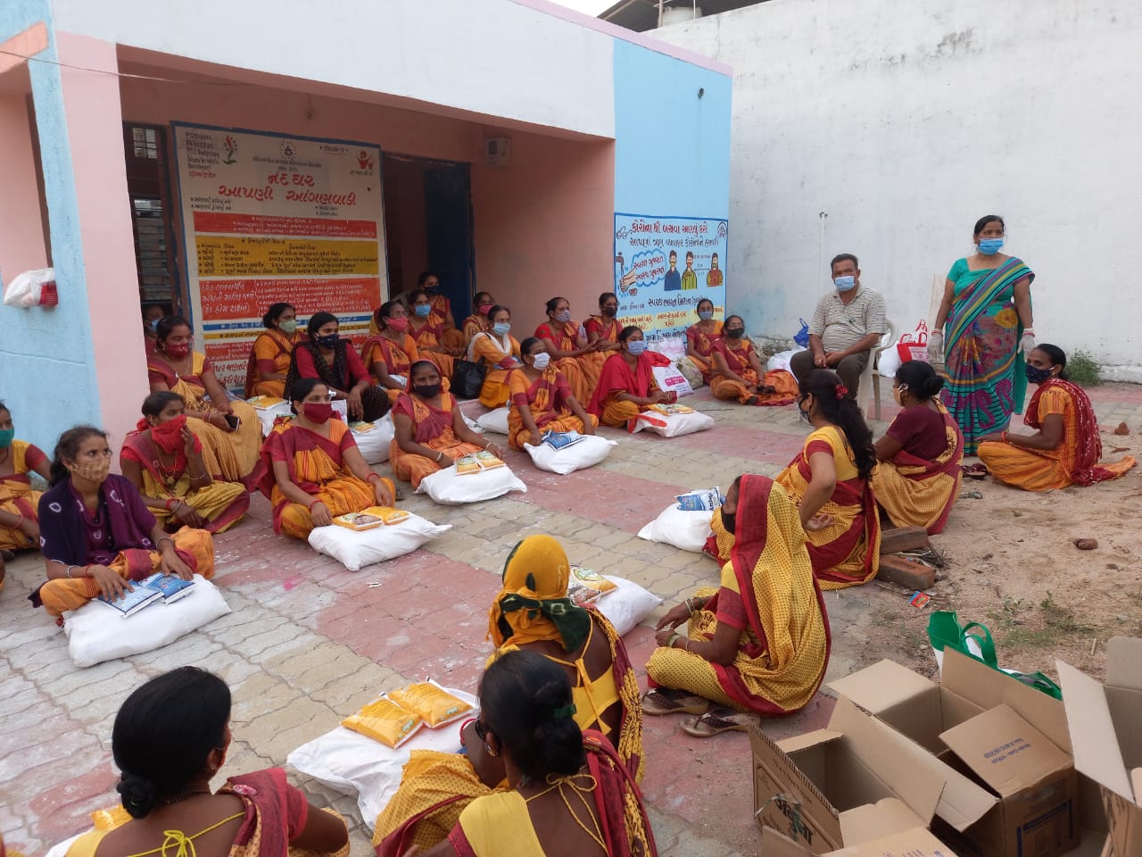 પંચમહાલ જિલ્લાના ગોધરા તાલુકાના ટીમ્બારોડ ખાતે ગોપાલભાઈ પટેલ કારોબારી સદસ્ય, ગુજરાત પ્રદેશ ભાજપ દ્વારા આજરોજ કોરોના મહામારીમાં દિવસ રાત સેવા આપતા કોરોના વોરીયર્સ આશા વર્કર, આંગણવાડી કાર્યકર-તેડાગર સ્ટાફને રાશન કીટ અને જીવન જરૂરિયાત કીટ આપવામાં આવી. ગોપાલ ભાઇ પટેલ દ્વારા જણાવવામાં આવેલ કે ” કોરોના મહામારીમાં આપણા કોરાના વોરીયર્સ બહેનો દિવસ રાત પોતાના કુટુંબ કબીલાની ચિંતા કર્યા વગર લોકોને નવજીવન આપવાનું કાર્ય કરી રહ્યા છે. તેઓની નિઃસ્વાર્થ સેવાથી ઘણા જ કુટુંબોએ પોતાના સ્વજનોને હેમખેમ પરત મેળવ્યા છે. તે બદલ આભાર વ્યક્ત કર્યો હતો.