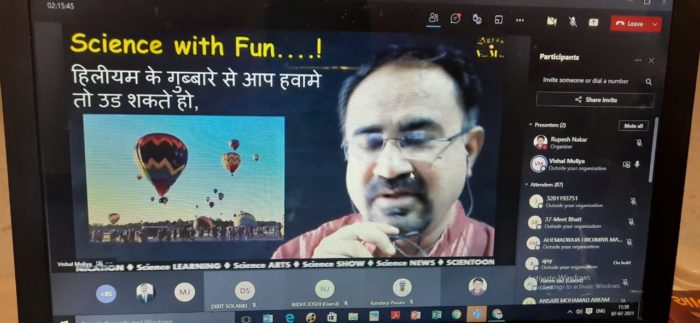 ત્યારબાદ બીજા વક્તવ્યમાં જામનગર થી પ્રો. વિશાલ મૂલીયા સાહેબે પોતાની આગવી શૈલીમાં “ફન વિથ સાયન્સ” વિષયમાં સાયન્સ ટૂન, સાયન્સ વિથ પોએમ્સ, સાયન્સ વિથ એનિમેશન જેવી ટેક્નિકથી વિદ્યાર્થીઓને સાયન્સના અઘરા ગણાતા વિષયો સરળતાથી સમજાવ્યા હતા. આ ખુબ જ સુંદર વક્તવ્યમાં સૌ કોઈને ખુબજ શીખવા મળ્યું હતું. કાર્યક્રમમાં શ્રી ગોવિંદ ગુરુ યુનિ. ના કુલસચિવ ડો. અનિલ સોલંકી સાહેબે હાજરી આપી સૌને પ્રોત્સાહિત કર્યા હતા. આ ઉપરાંત મીડિયા કન્વીનર SGGU, ડો. અજય સોની, એમ એમ. ગાંધી આર્ટ્સ એન્ડ કોમર્સ કોલેજના પ્રિન્સિપાલ, ડો. કિશોર વ્યાસ તથા રાષ્ટ્રપતિ એવોર્ડિ-મયંક શાહ, એમ એન્ડ વી આર્ટ્સ એન્ડ કોમર્સ કોલેજના પ્રિન્સિપાલ ડો. યસવંત શર્મા, એન.એસ.એસ. કોર્ડિનેટર –નરસિંહભાઈ પટેલ, ગોવિંદ ગુરુ યુનિ., ઉપરાંત રાજ્યની વિવિધ કોલેજોના આચાર્યઓ, અધ્યાપક ઓ અને વિદ્યાર્થીઓએ ખાસ પ્રોગ્રામનો લાભ લીધો હતો. કોલેજના પ્રિન્સિપાલ ડો. એમ.બી.પટેલે વિદ્યાર્થીઓને ખાસ આવા જ્ઞાન ઉપયોગી પ્રોગ્રામનો વધુમાં વધુ લાભ લેવા આહ્વાન કર્યું હતું. પ્રોગ્રામના અંતે આભાર વિધિ, કોલેજના ભૌતિક શાસ્ત્ર વિષયના કંદર્પ પુરાણી કરી હતી. સમગ્ર પ્રોગ્રામ નું સફળ આયોજન અને સંચાલન બોટની વિષમાં આસી. પ્રોફેસર અને NSS પ્રોગ્રામ ઓફિસર તેમજ કાર્યક્ર્મના ઓર્ગેનાઇજિંગ સેક્રેટરી ડો. રૂપેશ નાકરે કર્યું હતું.
