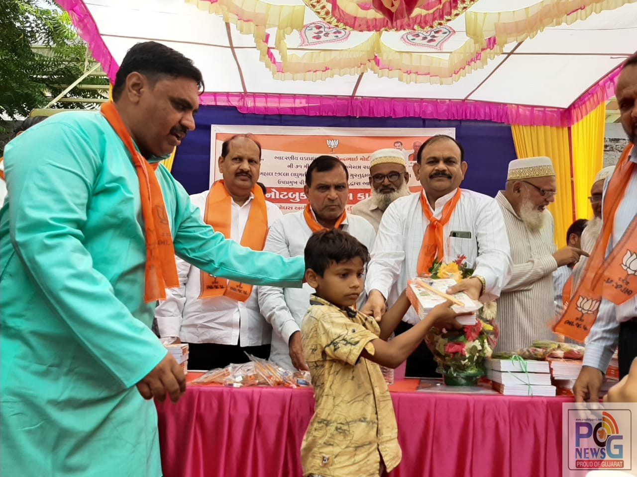પંચમહાલ જિલ્લા ભાજપ લઘુમતી મોરચાના પ્રમુખ મુસ્તુફા પુનાવાલા ઉપ-પ્રમુખ રિઝવાન મુલતાની ગોધરા અર્બન બેંકના સહયોગથી ગોધરા ખાતે લઘુમતી સમાજના બાળકોને વડાપ્રધાન નરેન્દ્રભાઈ મોદીના 71 માં જન્મદિન નિમિત્તે તથા બેટી બચાવો બેટી પઢાવોના ઉદ્દેશ્યથી ધારાસભ્ય સી કે રાઉલજીના હસ્તે નોટબુકો તથા શૈક્ષણિક સાધનોનું વિતરણ કરવામાં આવ્યું હતું.