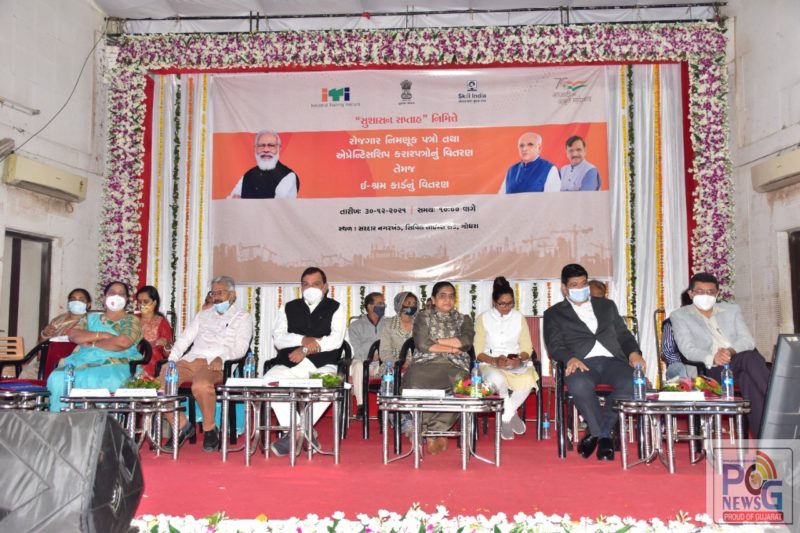 રાજ્યભરમાં ગુડ ગર્વનન્સ વીકની ઉજવણી હાથધરી વિવિધ કલ્યાણ યોજનાઓ અંતર્ગત લાભાર્થીઓને લાભોનું વિતરણ કરવામાં આવી રહ્યું છે. જે શ્રેણીમાં પંચમહાલ જિલ્લામાં આજે છઠ્ઠા દિવસે સરદાર નગરખંડ, ગોધરા ખાતે શ્રમ, કૌશલ્ય વિકાસ અને રોજગાર વિભાગનો કાર્યક્રમ જિલ્લા પંચાયત પ્રમુખશ્રી કામિનીબેન સોલંકીના અધ્યક્ષસ્થાને યોજાયો હતો. કાર્યક્રમમાં 50 લાભાર્થીઓને રોજગારી પત્રો, 150 લાભાર્થીઓને એપ્રેન્ટિસશીપ કરારપત્રો અને 50 લાભાર્થીઓને ઈ-શ્રમ કાર્ડનું વિતરણ કરવામાં આવ્યું હતું.