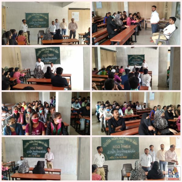 શ્રી ગોવિંદ ગુરુ યુનિવર્સિટી સંલગ્ન પંચશીલ આર્ટસ એન્ડ સાયન્સ કોલેજ, ગોધરા રાષ્ટ્રીય સેવા યોજના (NSS) વિભાગ અંતર્ગત રાષ્ટ્રીય સેવા યોજના(NSS) માર્ગદર્શન કાર્યક્રમ” યોજવામાં આવ્યો હતો. કાર્યક્રમના અધ્યક્ષ અને કોલેજના ટ્રસ્ટી ડૉ. જે.બી.પટેલ રાષ્ટ્રીય સેવા યોજના સંદર્ભે વિદ્યાર્થીઓને પ્રાસ્તાવિક માહિતી આપી હતી.