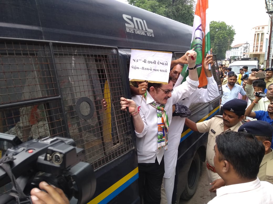 ભડકે બળતાં ભાવોસામે આજે પંચમહાલ જિલ્લાના ગોધરા માં બંધ ના એલાન માં કોંગ્રેસના કાર્યકરો ની અટકાયત