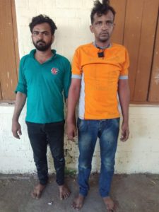 પોલીસ સુત્રો પાસેથી મળતી વિગતો અનુસાર પંચમહાલ એલસીબી ટીમ પ્રેટોંલિંગમા હતી ત્યારે તેમને બાતમી મળી હતી કે એક નંબર વગરની હિરો હોન્ડા ડીલક્ષમોટર સાઈકલ લઈને બે ઈસમો વેચવા માટે શહેરના સરદાર નગર ખંડ તેમજ ગોધરા સાવલી વાડ વિસ્તારમા શંકાસ્પદ હાલતમાં ફરે છે.એલસીબી અને એસઓજી શાખાની સંયુકત ટીમે ખાનગી રાહે વોચ રાખીને સરદારનગર ખંડ પાસે બાતમીની વર્ણનવાળી બાઈક સાથે બે ઈસમો અશરફ મો. યુસુફ મેદા.તેમજ જુબેર રફિક વલીવાકાંને ઝડપી લીધા હતા તેમનીપુછપરછમા અઠવાડીયા પહેલા દાહોદ રોડ પાસે આવેલા એક મેડીકેલ સ્ટોરનુ શટર તોડીને ચાદીના સિક્કા તેમજ ડીવીઆર કાર્ડ, રોકડરકમ ચોર્યાની કબુલાત કરી હતી. તેમની પાસેરહેલી બાઈક આણંદ પાસે આવેલીબોરસદ ચોકડી પાસે આવેલી એક સોસાયટીમાંથી ચોરી કર્યાની કબુલાત કરી હતી પોલીસે રોકડક્રમ ચાદીના સિક્કા મોબાઈલફોન,બાઈક સહીતનો કુલ ૬૦,૦૦૦ રુપિયાનો મુદ્દામાલ જપ્ત કરીને કાયદેસરની કાર્યવાહી હાથ ધરીછે.