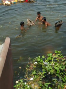 ગોધરાના રામસાગર તળાવમાં ગણેશજી ની મુર્તિઓ તોડીને તેમાથી લોખંડ સહિતની સામગ્રી કાઢતા કેટલાક અસામજીક તત્વો