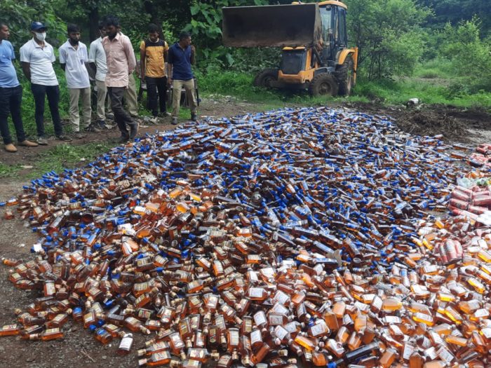 ગાંધીના ગુજરાતમા દારૂનો ધૂમ વેપલો ચાલી રહ્યો છે. ગુજરાતમાં દારૂબંધી નામની જ છે કારણ કે ગુજરાતમા દારૂ પીવાય છે, વેચાય છે અને પોલીસ દ્વારા પકડાય પણ છે.! આ પુરાવો બતાવે છે કે દારૂની ગુજરાતમા મોટેપાયે થતી રહી છે. ખાસ કરીને નર્મદા જિલ્લામા મહારાષ્ટ્રને અડીને આવેલ સાગબારા તાલુકાના ધનશેરા ચેક પોસ્ટ પાસેથી ગુજરાત મહારાષ્ટ્રની બોર્ડર આવેલી છે. અહીંથી મોટાભાગે પોલીસને ચકમો આપીને દારૂની હેરાફેરી થતી રહે છે ક્યારેક પકડાય છે તો ક્યારેક હાથથી છટકી જાય છે. હમણાં આવો પકડાયેલ દારૂનો મોટા પાયે નાશ કરવામાં આવ્યો છે.