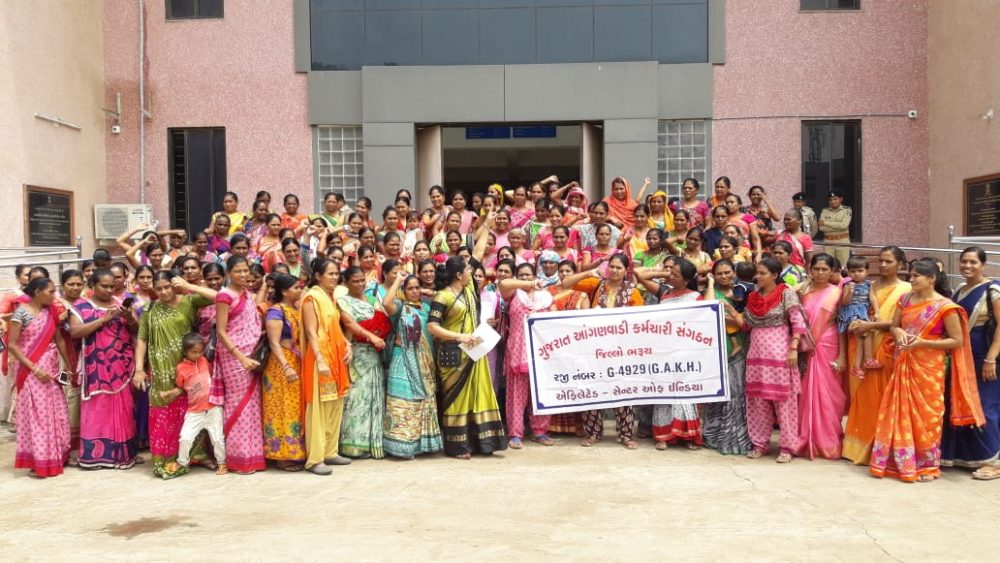 ગુજરાતના ગામડે ગામડે અને શહેરની ગરીબ વસ્તીમાં કુપોષણ સામે કામ કરતી આંગણવાડી બહેનો તથા આરોગ્ય સેવા પૂરી પાડતી બહેનો પાસેથી 80 હજારનો પગાર મેળવતા સરકારી નોકરિયાત કરતાં પણ વધુ કામગીરી લેવાતી હોવા છતાં, તદ્દન નજીવું માનદવેતન તથા નજીવું કામગીરીનું વળતર ચૂકવાય છે. આંધ પ્રદેશ, દિલ્હી,હરિયાણા જેવા રાજ્યોમાં પણ આંગણવાડી અને આશા વર્કરોને માસિક રૂ.10000/- ચૂકવાય છે. તે સામે બહેનોમાં ભારે રોષ પ્રવૃતિ રહ્યો છે…