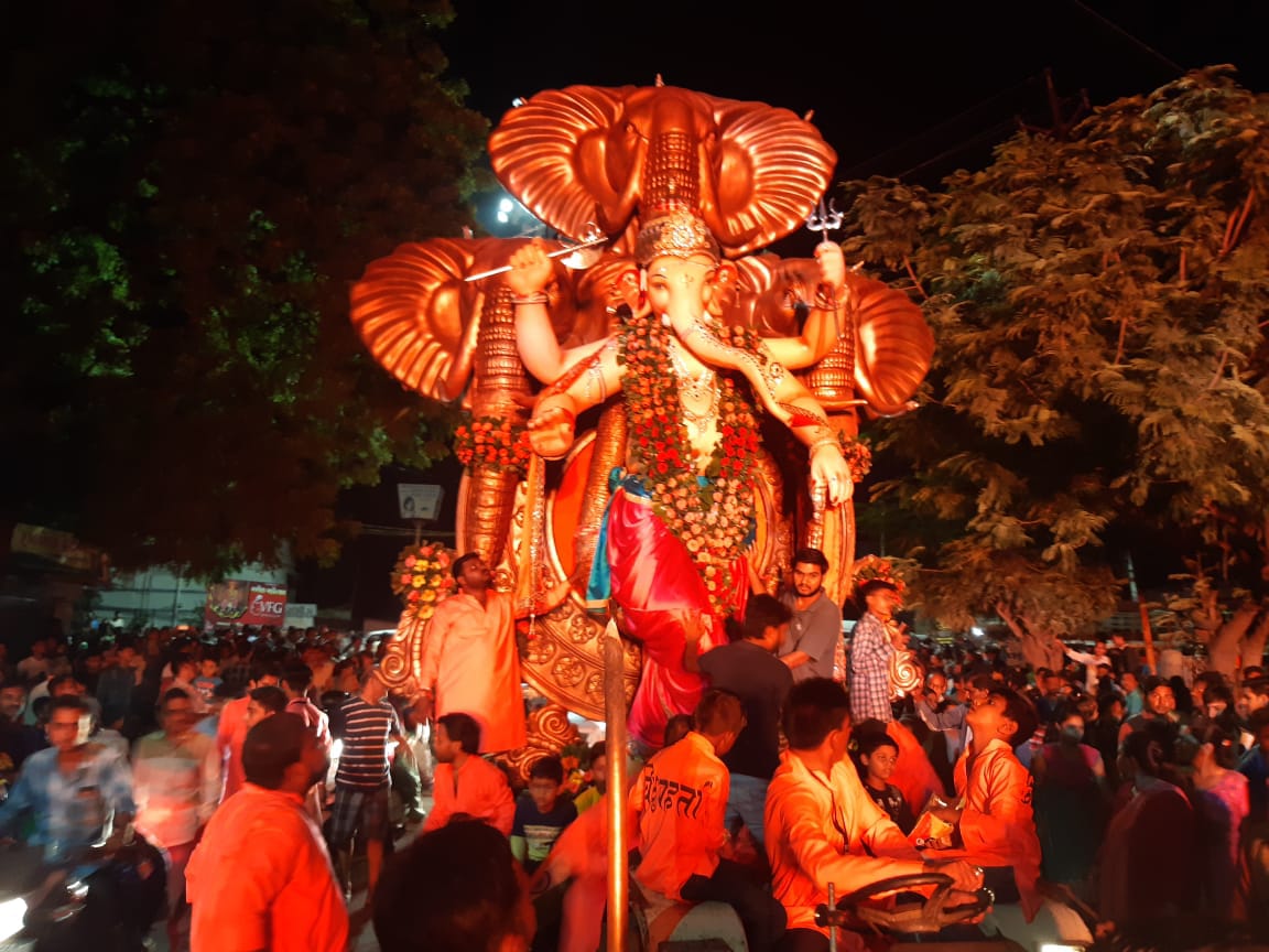 હાલોલ નગરમાં પણ ગત રાતથી શ્રીજીની પ્રતિમાઓનું આગમન થવા લાગ્યું જેથી ગણેશમંડળના તમામ લોકો ડીજેના સાથે જુમી ઊઠ્યા, વિવિધ મંડળો દ્વારા અલગ અલગ પ્રકારના ડ્રેસ કોડ રાખી તે પહેરવામાં આવ્યો હતો તેમજ હાલોલનું વિઘ્નહર્તા યુવક મંડળ ગ્રુપ VYM આયોજીત ચિત્રકૂટ સોસાયટી કણજરી રોડ દ્વારા શ્રીજીની પ્રતિમાનું આગમન અનોખી રીતે આગમન કર્યું હાલોલ ટોલ નાકાથી ડીજે સાથે ભવ્ય શોભાયાત્રા સાથે નગરમાં ફરી હતી અને હાલોલ નગર ભક્તિમય બની ગયું હતું અને તમામ નગરજનો શ્રીજીની પ્રતિમાના દર્શન કરવા ઉમટી પડ્યા