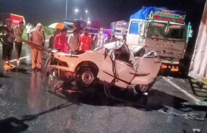 હરિયાણાના બહાદુરગઢમાં મોડી રાત્રે ગમખ્વાર અકસ્માત સર્જાયો હતો. આ અકસ્માતમાં 4 લોકોના મોત થઈ ગયા હતા અને બે લોકો ગંભીર રીતે ઘાયલ થયા હતા. આ અકસ્માત બહાદુરગઢમાં કુંડલી માનેસર પલવલ એક્સપ્રેસવે પર માંડોલી ટોલ પ્લાઝા નજીક સર્જાયો હતો. આ અકસ્માતમાં 4 લોકોએ પોતાનો જીવ ગુમાવ્યો હતો. જેમાં એક પુરુષ, એક મહિલા અને બે છોકરીઓ સામેલ છે. આ તમામના ઘટના સ્થળે જ મોત થઈ ગયા હતા. મહિલાનું નામ અંજલી જણાવવામાં આવી રહ્યું છે.