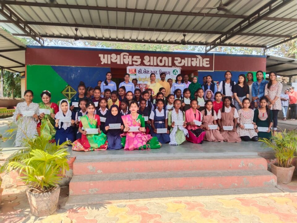 હાંસોટ તાલુકાની પ્રાથમિક શાળા આમોદ ખાતે બિરલા સેલ્યુલોજિક ખરચ સી.એસ.આર વિભાગ દ્વારા કન્યા શિષ્યવૃત્તિ કાર્યક્રમ યોજાયો.