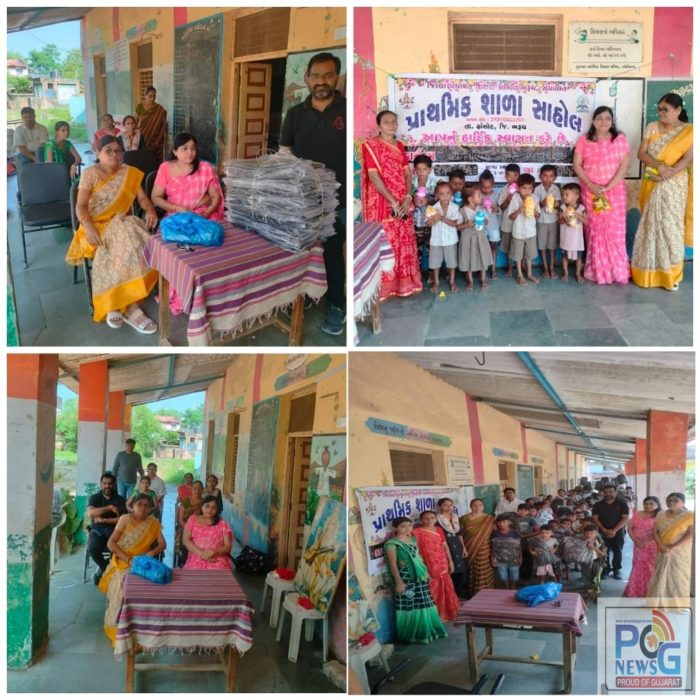 હાંસોટ તાલુકાની પ્રાથમિક શાળા સાહોલમાં દીકરી ક્રિષ્ણા પટેલના જન્મદિવસ નિમિત્તે દાતાશ્રી દ્વારા શૈક્ષણિક કીટનું વિતરણ દીકરીની માતા રશ્મિબેન પટેલ કે જેઓ અમદાવાદ ખાતે પોલીસ ડિપાર્ટમેન્ટના વુમન પ્રેસિડેન્ટ છે જેઓએ દીકરી ક્રિષ્ણાની જન્મદિવસ પ્રસંગે શાળામાં અભ્યાસ કરતાં તેમજ આંગણવાડી ખાતે અભ્યાસ કરતાં તમામ બાળકોને શૈક્ષણિક કીટ આપી સમાજમાં ઉમદા ઉદાહરણ પૂરું પાડ્યું છે. તેઓની સાથે કપિલાબેન પટેલ સામાજિક કાર્યકર્તા અંકલેશ્વર પણ હાજર રહ્યા હતાં. તેઓના આ ભગીરથ નિ:સ્વાર્થ કાર્ય બદલ શાળા પરિવારે આભાર માન્યો હતો અને શાળાના શિક્ષક નિલેશકુમાર ડાહ્યાભાઈ સોલંકી એ વિશેષ આભાર માન્યો હતો. આ પ્રસંગે શાળાના આચાર્યા પારસબેન, શિક્ષકગણ તેજસકુમાર પટેલ, નિતેશભાઈ ટંડેલ, એસ. એમ. સી અધ્યક્ષ વનિતાબેન પટેલ, આંગણવાડી કાર્યકર હેમલત્તાબેન પટેલ પણ ઉપસ્થિત રહ્યા હતાં.