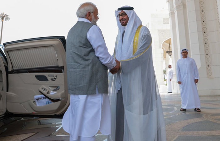 વડાપ્રધાન મોદી યુએઈની મુલાકાતે પહોંચ્યા છે. આ દરમિાયન તેમણે યુએઈના રાષ્ટ્રપતિ શેખ મોહમ્મદ બિન ઝાયેદ અલ નાહ્યાન સાથે દ્વિપક્ષીય સંબંધોને વધુ મજબૂત બનાવવા અંગે ચર્ચા કરી હતી. યુએઈના રાષ્ટ્રપતિએ તેમનું સ્વાગત કર્યું હતું.